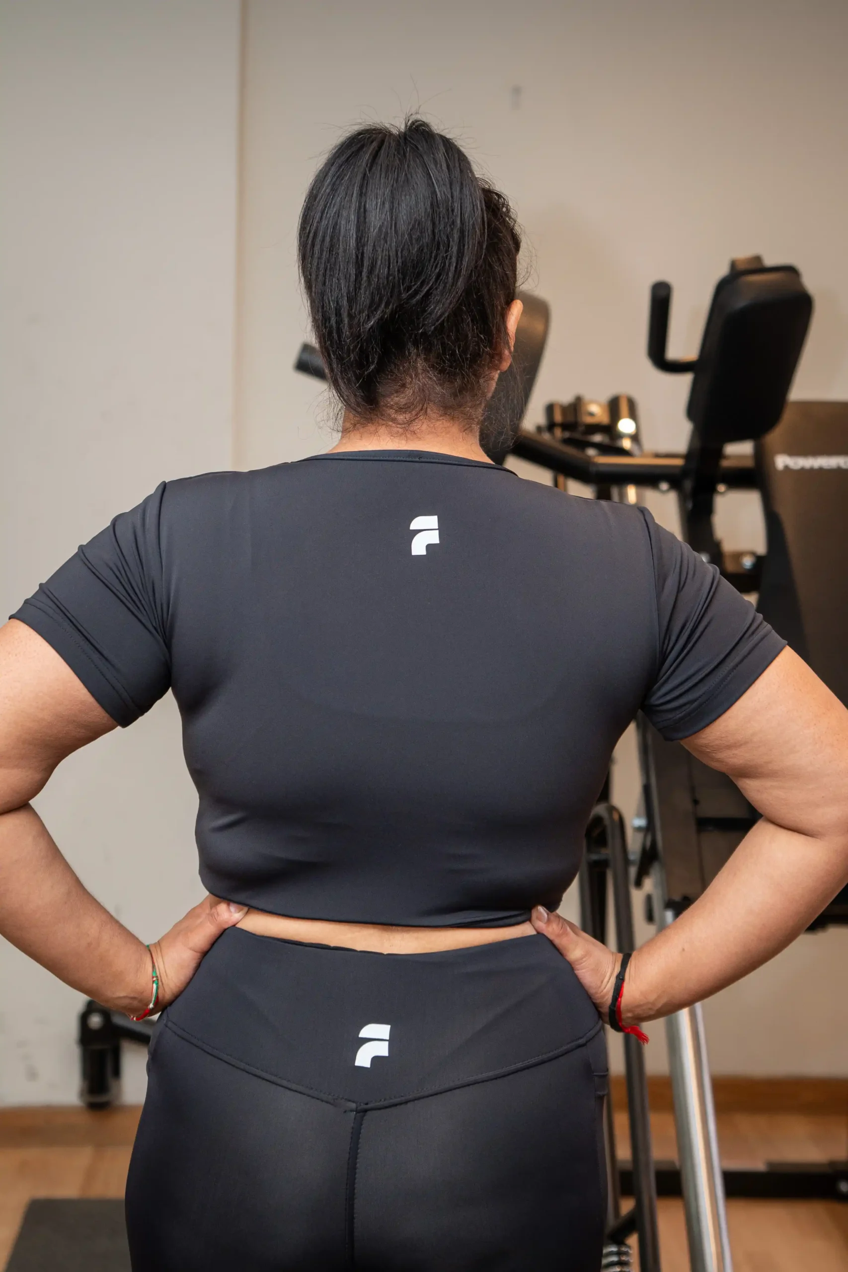 The Coco Crop is great for showcasing upper body definition. This top is elasticated at the upper waist to ensure comfort, security and confidence while training. The Coco is flattering for all body types – with short sleeves and breathable, stretchy and moisture wicking material. This top works well for strength training and light cardio.
